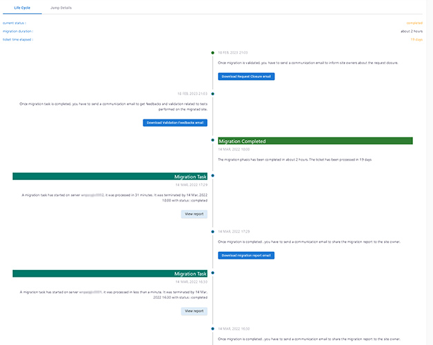 Manage and process the migration requests raised by any IT ticketing software. Easy to create a new request in the tool based on the informations provided by email.
